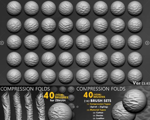 >zbrush衣服褶皱笔刷ZB皮革织物布料衣服纺织物褶皱40个褶皱笔刷